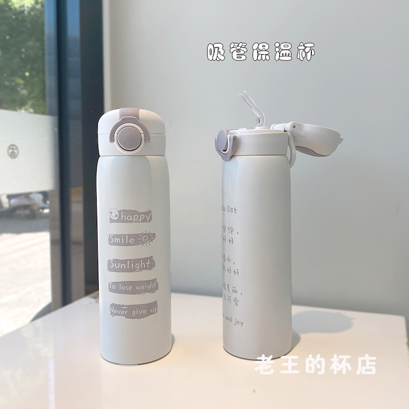 Insulation cup 304 stainless steel student portable water cup ins wind creative with straw cup female cute girl heart