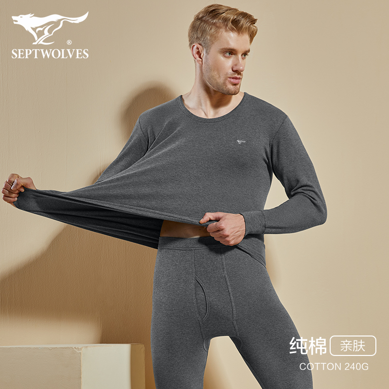 Seven Wolves Pure Cotton Autumn Clothing Sanitary Pants Suit Men's Thin calorific clothes Bottoms Full Cotton Sweatshirt Autumn Clothes Pants Winter