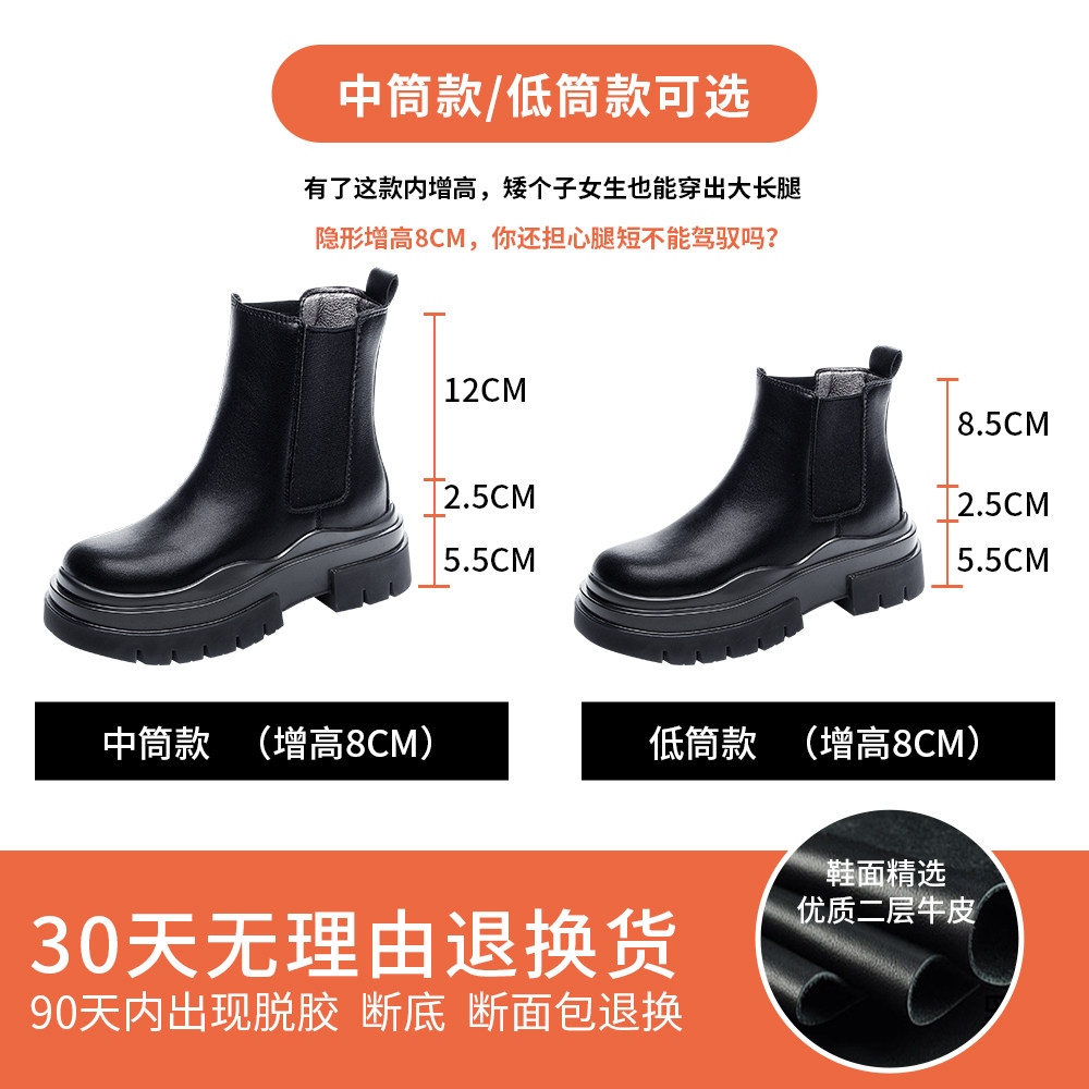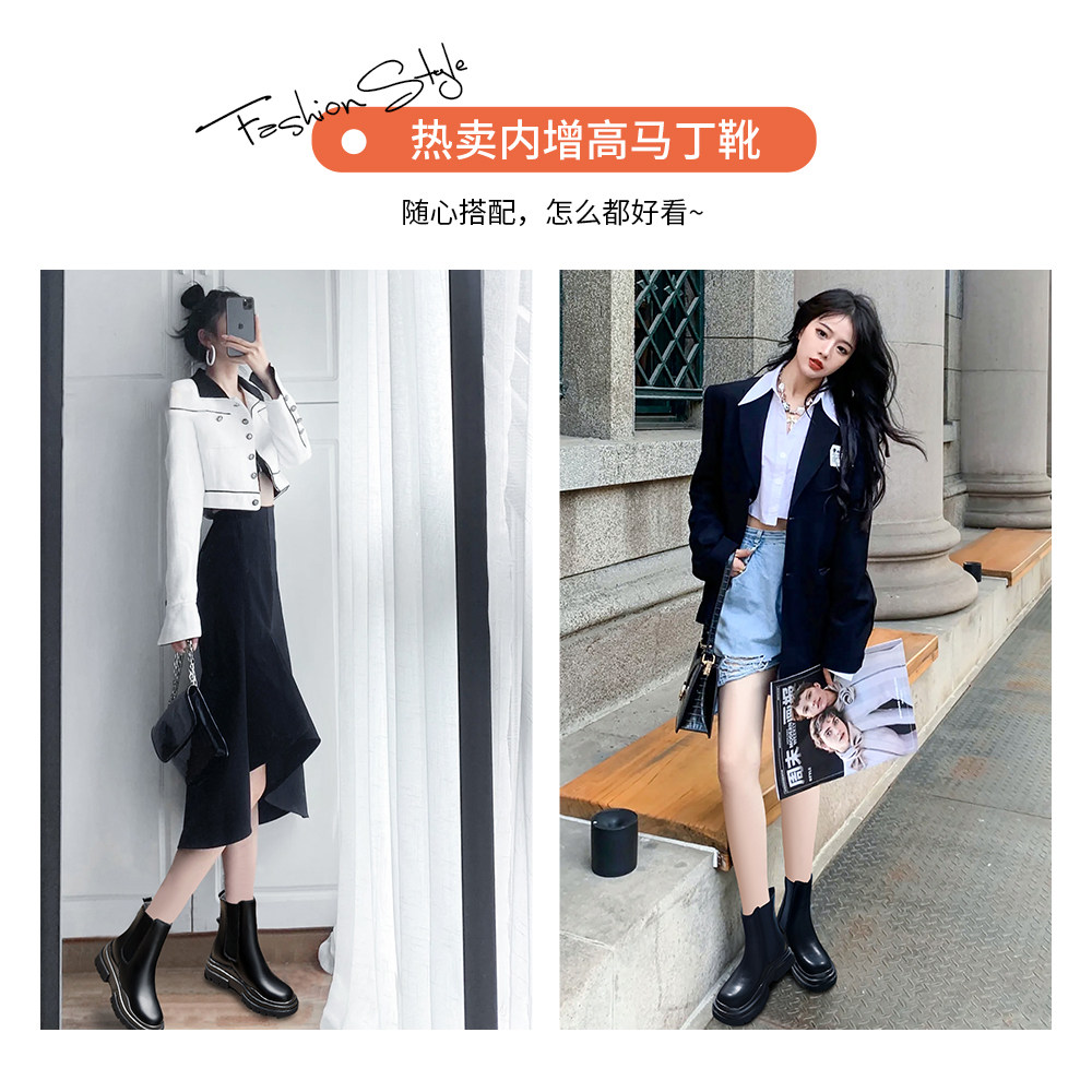 Martin boots women's 2022 new thick-soled heightened Chelsea boots spring and autumn single boots tide ins cool smoke tube short boots