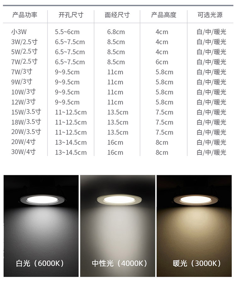 Full white shell-3W drilling hole 5 5~6cm full white shell-5W drilling hole 6 5~7 5cm full white shell-7W drilling hole 6 5~7 5cm full white shell-7W drilling hole 9~9
