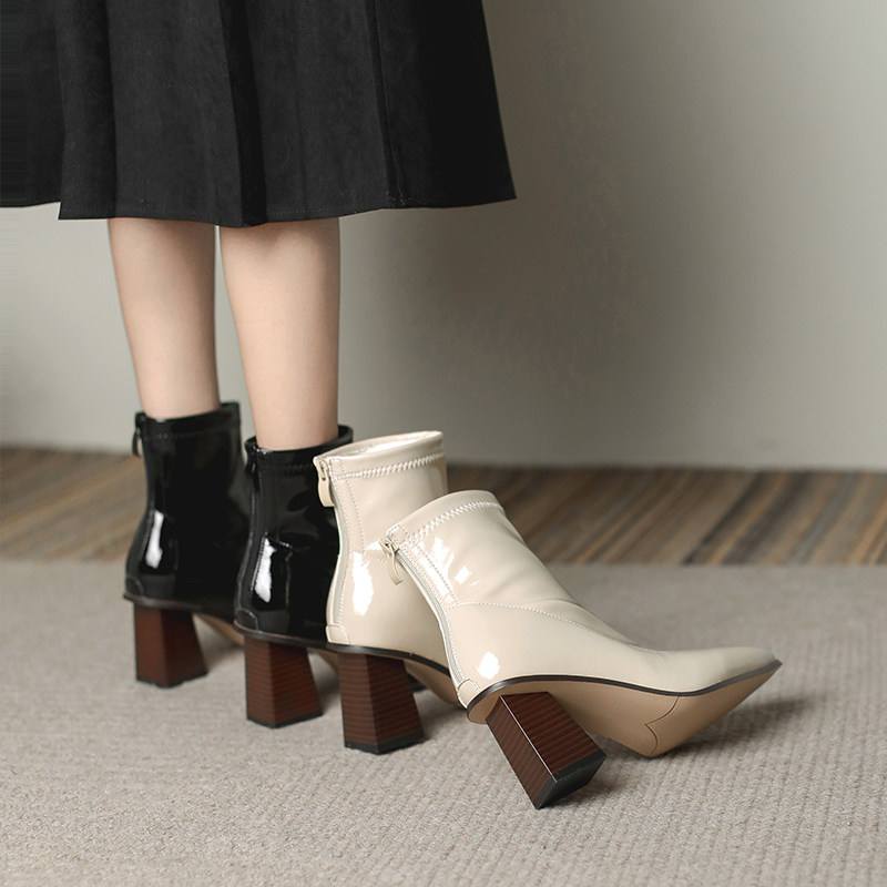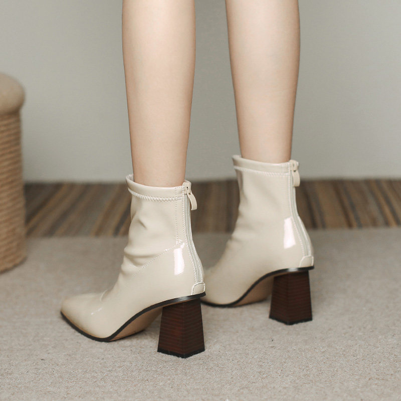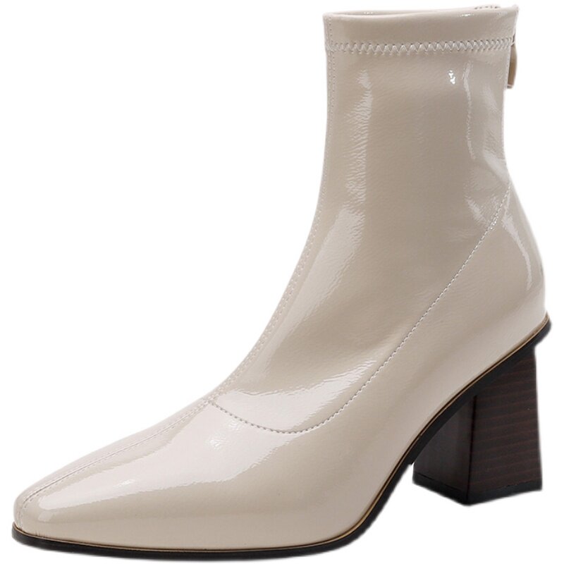 White Boots Spring Autumn High Heel Martin Boots 2022 New Women's Single Boots Inglées Rudena Heel Short Boots Winter Women Boots