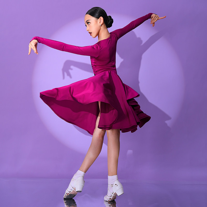 Children Latin Dancing Girls Long sleeves Professional Appraisal Exam Competition Clothing Young Children New Rules Racing uniforms 3557
