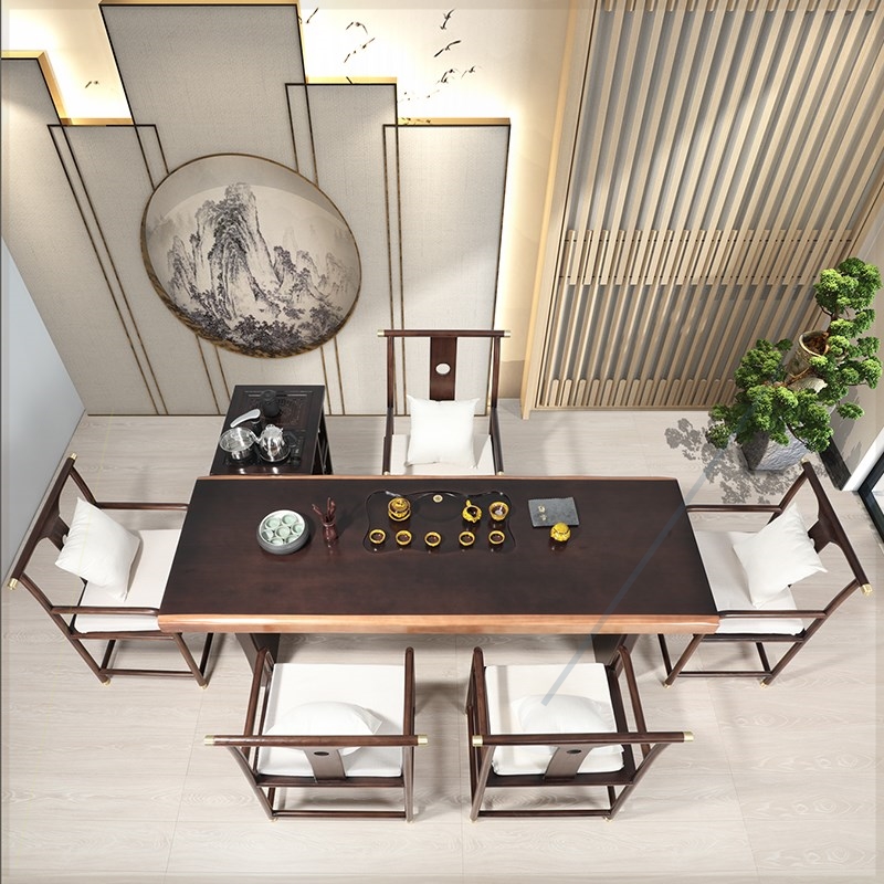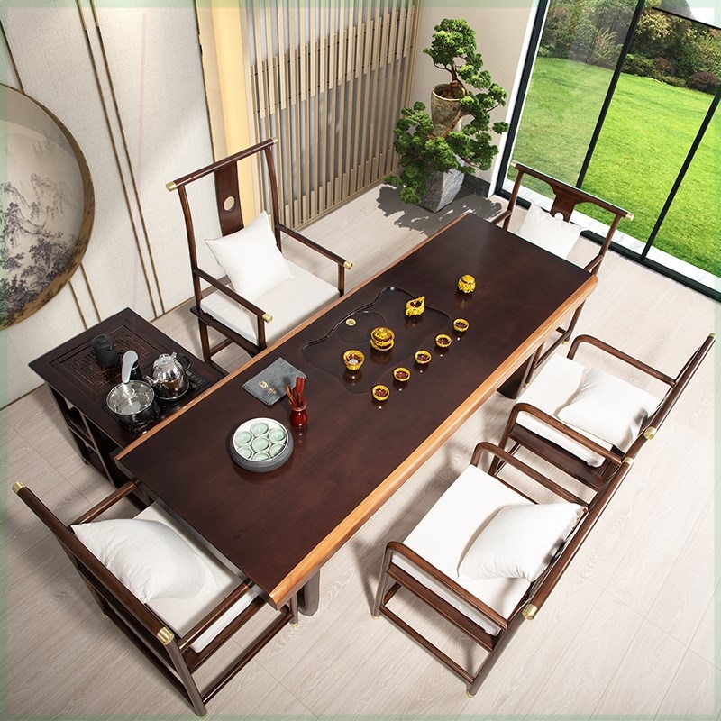 New Chinese solid wood tea table and chairs Combined modern simplicity Zen Imagery Tea Table Log Office Kung Fu Bubble Tea Table