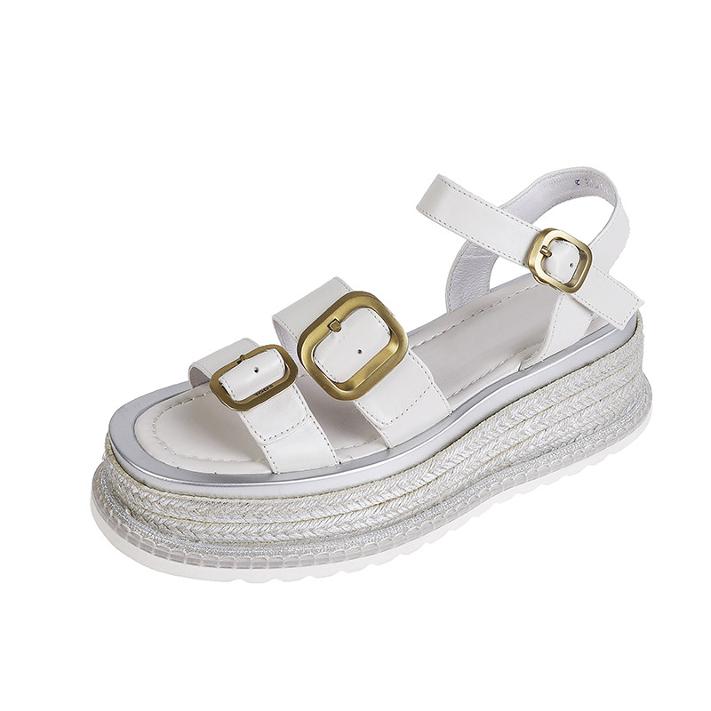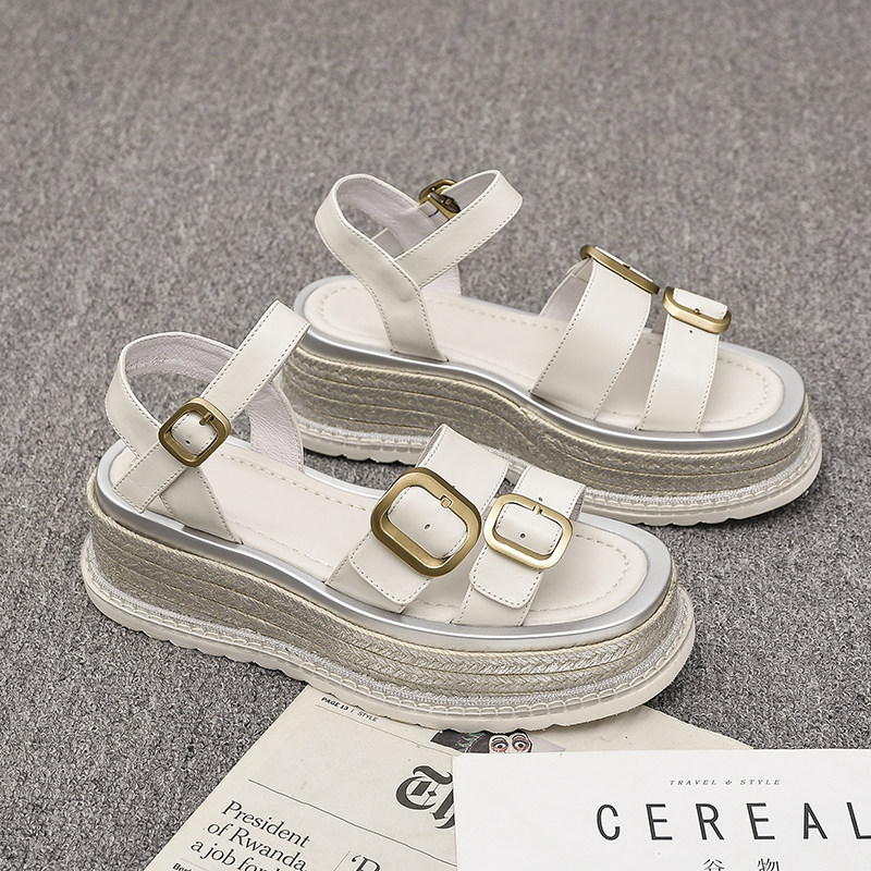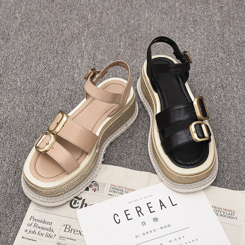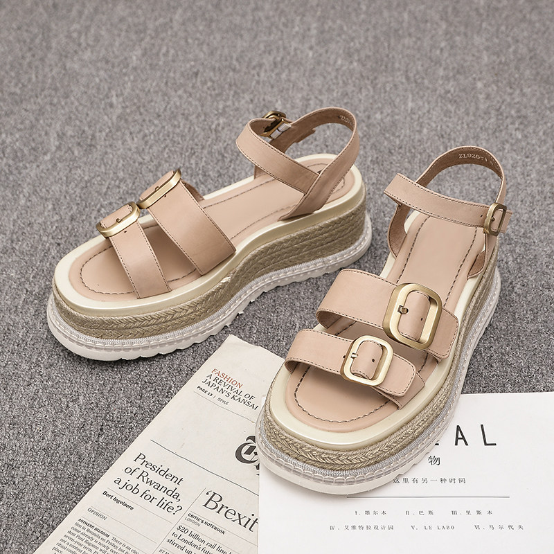 European station 2022 summer new sandals thick-soled leather all-match fashion sponge cake espadrille Roman women's shoes