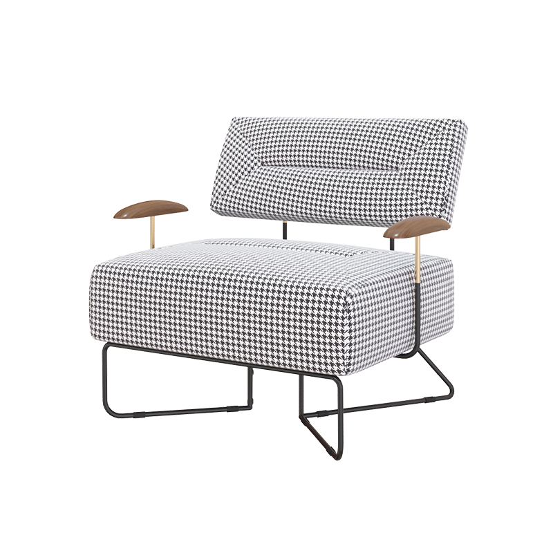 Nordic houndstooth grid red lazy sofa modern minimalist solid wood small apartment light luxury balcony fabric leisure chair