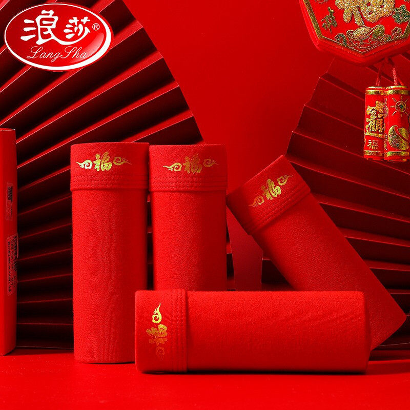 2022 new Langsha Benming year men's cotton underwear wedding mid-waist big red youth cotton boxers