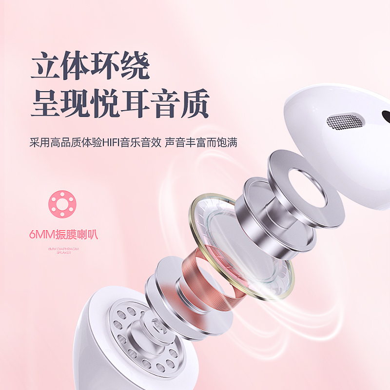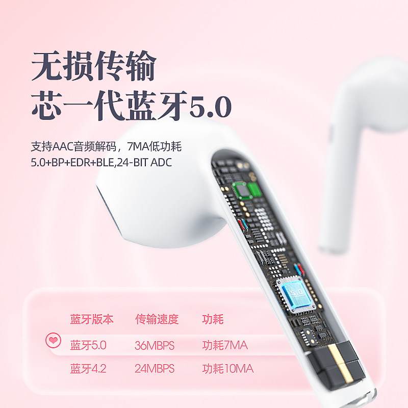 Bluetooth headset 2021 new girls real wireless sports delay-free binaural ladies ultra-long standby battery life high sound quality for Huawei vivo Xiaomi iphone universal noise reduction pink