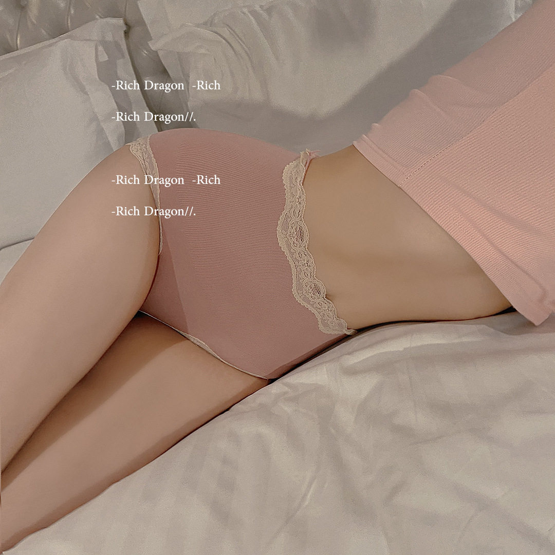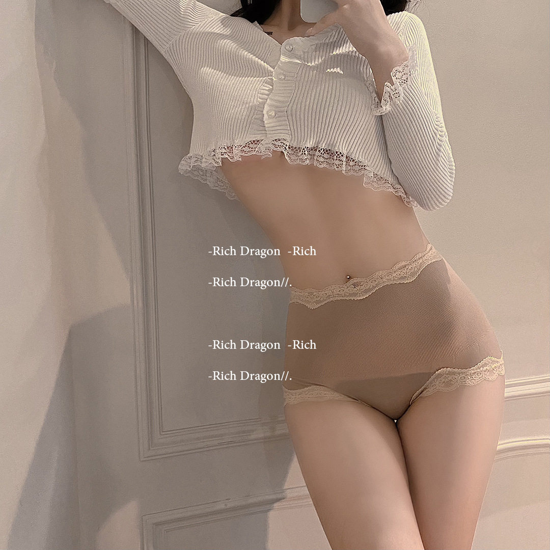 Japanese seamless high waist underpants lady sexy lace side lace hips with lace pure crotch triangles