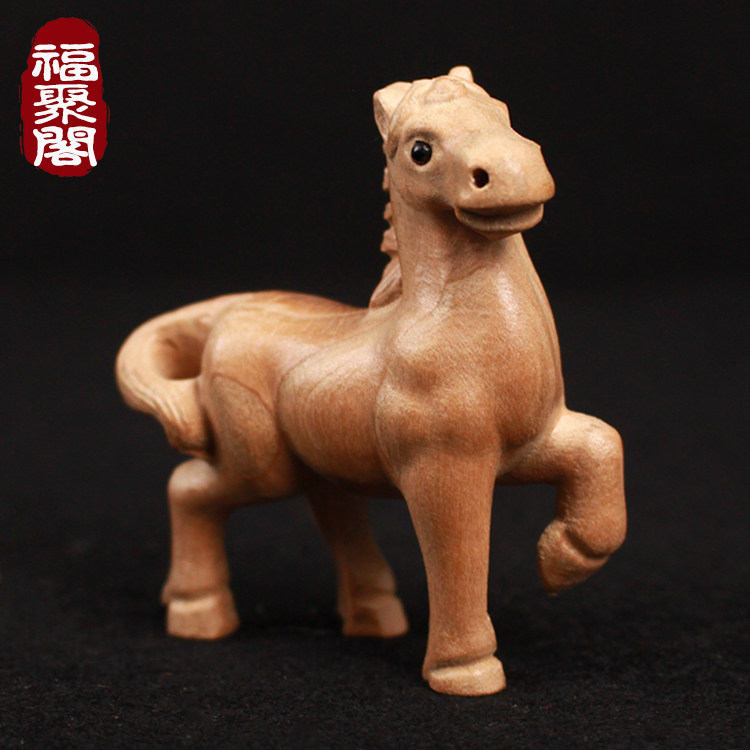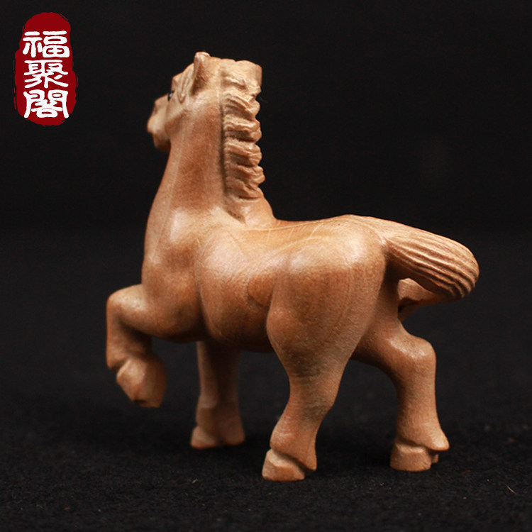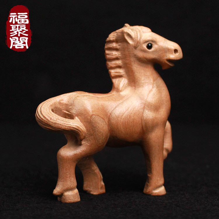Peach Trojan pendulum pieces wood sculpted original wooden duozodiac small horse craft gift pendulum decoration mascot without lacquer decoration Fortune Solid Wood