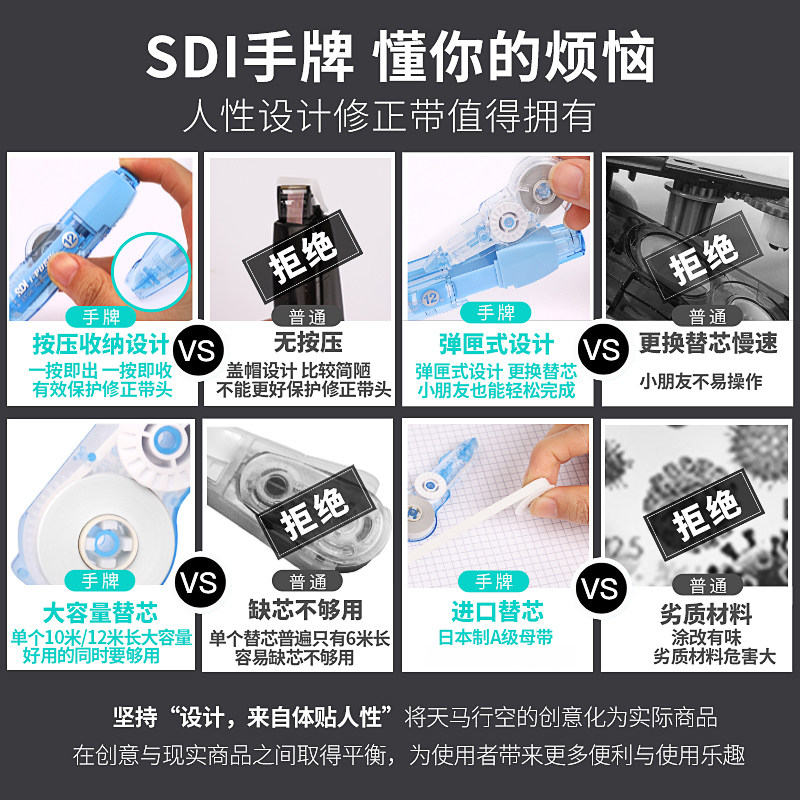 Taiwan SDI hand brand correction belt Japan imported correction belt replacement core affordable large-capacity push-type correction belt student cute girl error correction belt transparent word elimination belt mute modification belt