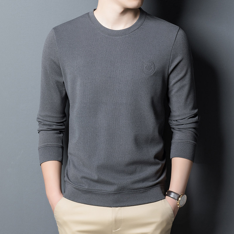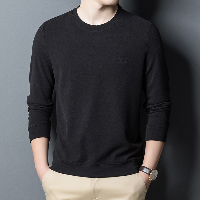 Round-collar thick cotton T men's fall new long sleeves T-shirt Bottom Jersey Loose Casual middle-aged men's clothing No-hat blouses