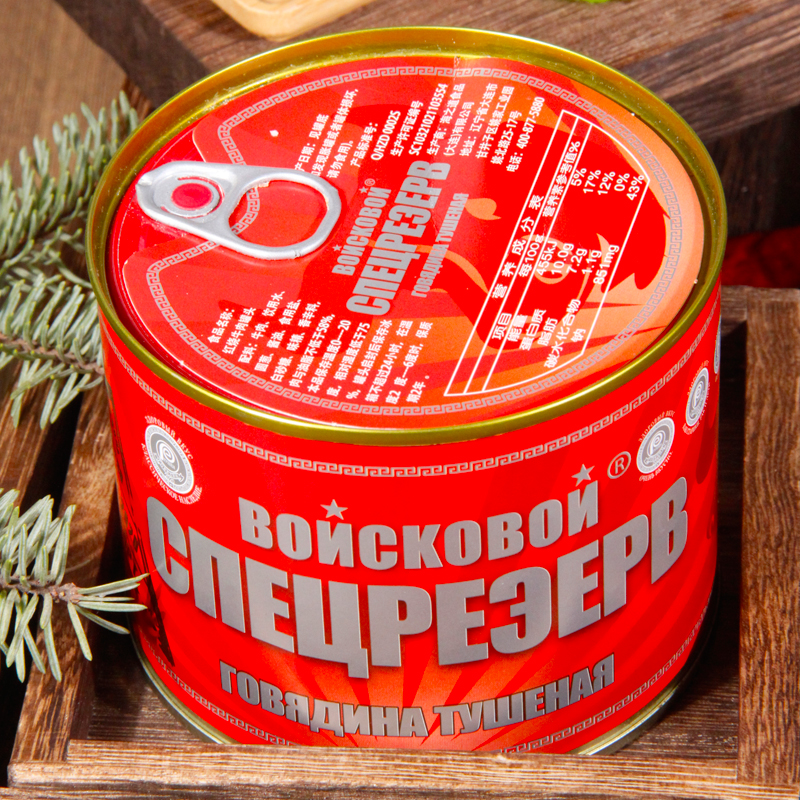 Russian-style canned beef ready-to-eat chunks of meat without starch fast food appetizers picnic braised soup 525g