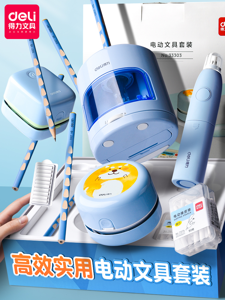 Powerful Electric Stationery Set Gift Box School Supplies Opening Gift Pack Primary School Children's Day 1st and 2nd Grade Freshmen Entrance Set Box Kindergarten Birthday Gifts Three-Five-Piece Sets for Boys and Girls