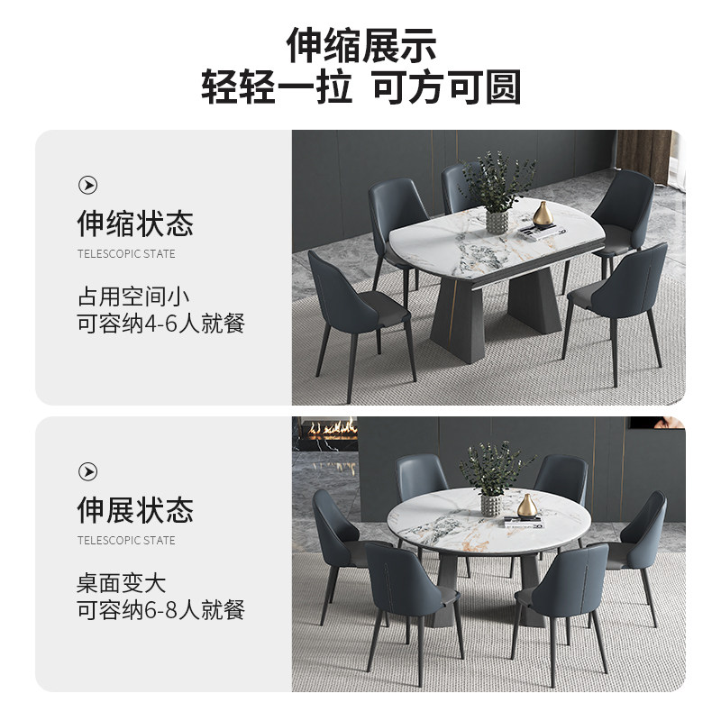 Gies Italian-style slate dining table simple home small apartment multi-functional Nordic dining table and chairs foldable telescopic round table