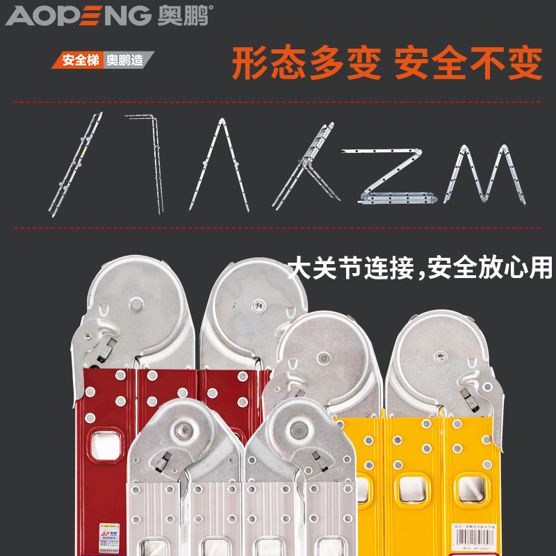 Openg home multi-functional folding aluminum alloy thickened herringbone ladder portable joint ladder lift engineering industrial ladder