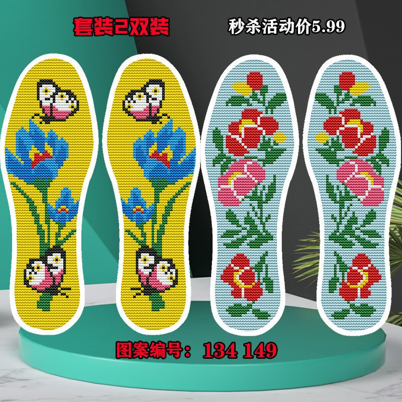 New cross-stitch insole handmade semi-finished embroidery insole full embroidery with needle and thread deodorant sweat absorption health care