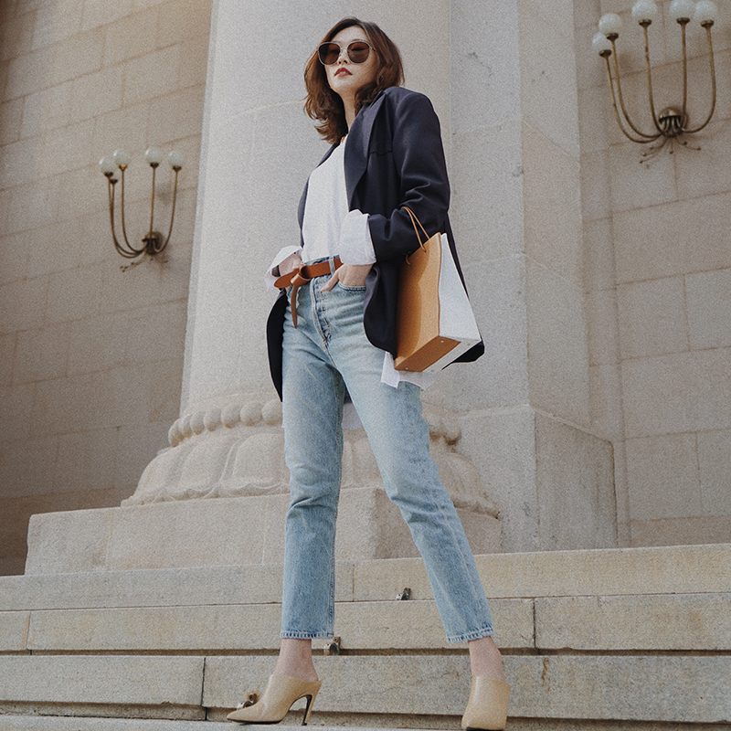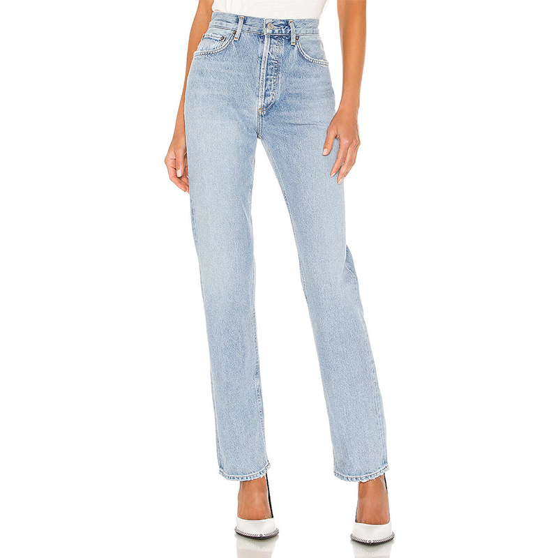 American aolde straight jeans women's 2021 autumn high waist loose nine points retro light blue slimming