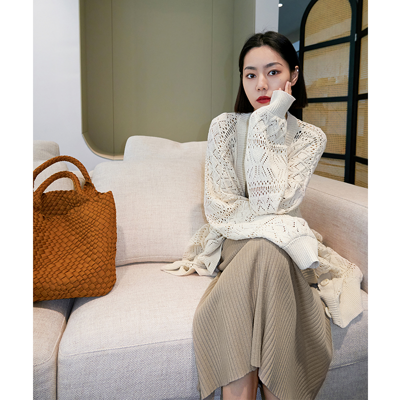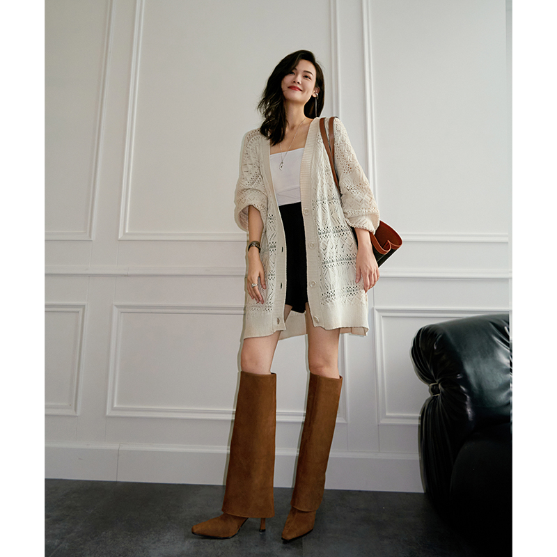 Meiyang MEIYANG (clear warehouse special selling and leaking) floating flowers Yao knit cardio-hoodie loose with long version of sweater jacket