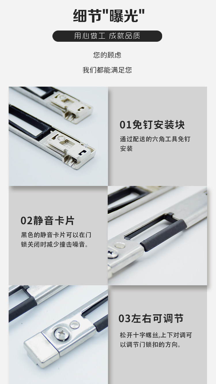 Broken bridge aluminum door lock door lock card shoe buckle piece punch-free lock nose door lock plate flat door lock tongue door lock accessories