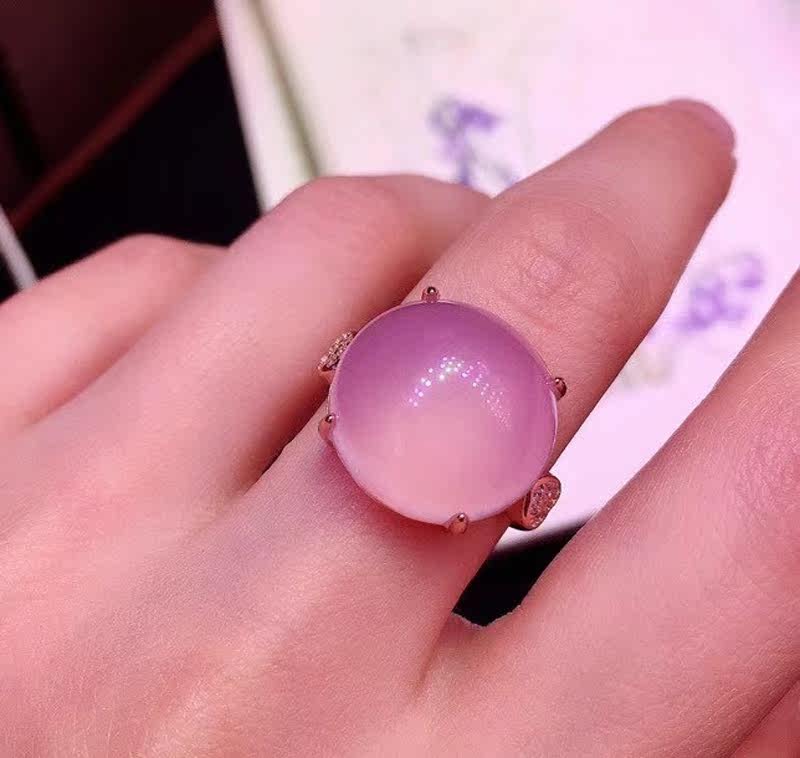 Natural Mozambique Pink Crystal Ring Female Style Big Pigeon Egg Flour Crystal Minimalist Ring Personality Adjustable