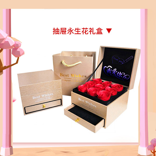 White gold Immortal flower drawer gift box rose gold Immortal flower drawer gift box rose gold Blue double door rose gift box white gold Lifting rose gift box rose gold Lifting rose gift box Xinyuxin