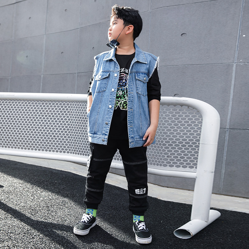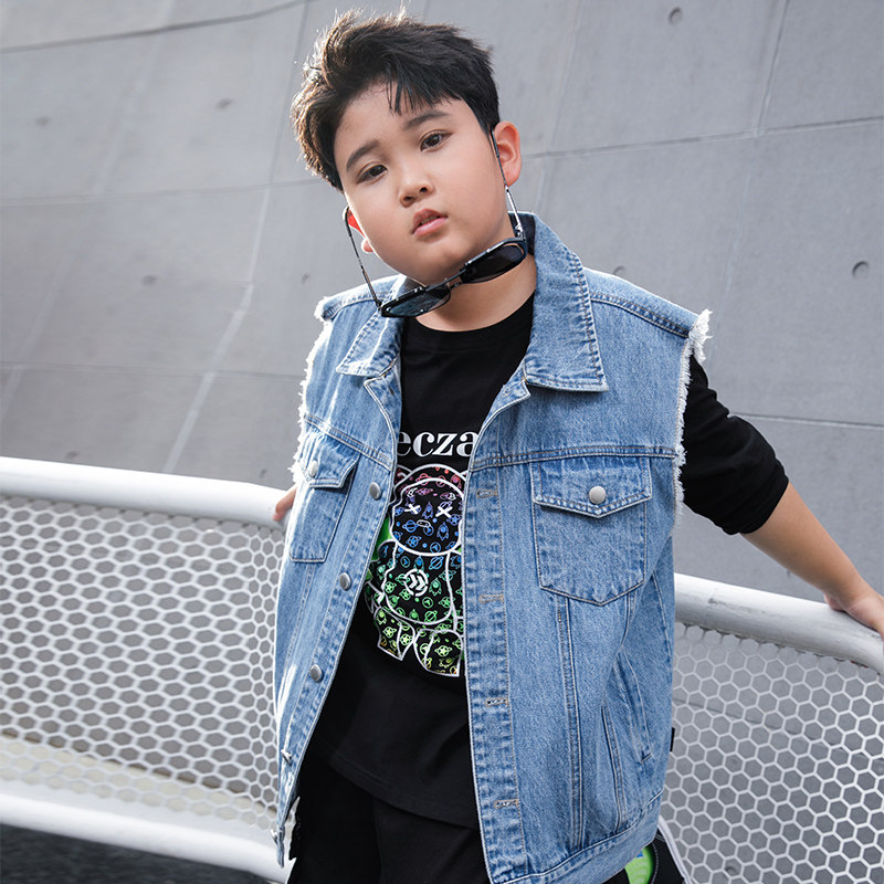 Piggy Piggy Boy Horse Chia Loose Fat Kid Boy Clothing Gfei Boy No Sleeve Jacket Denim Fat Boy Clothes