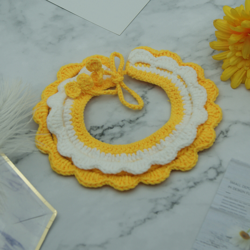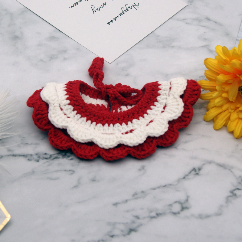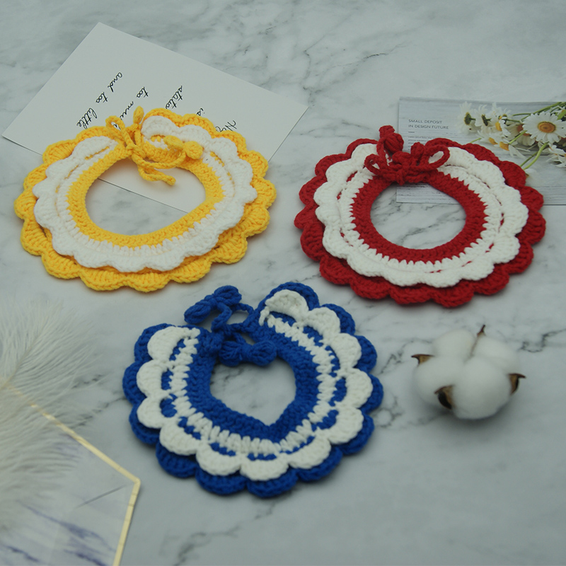 ins pure handmade knitted collar cat dog collar jewelry bib pet woven scarf saliva towel