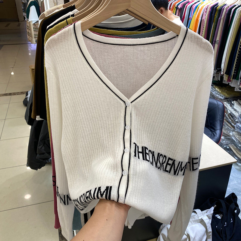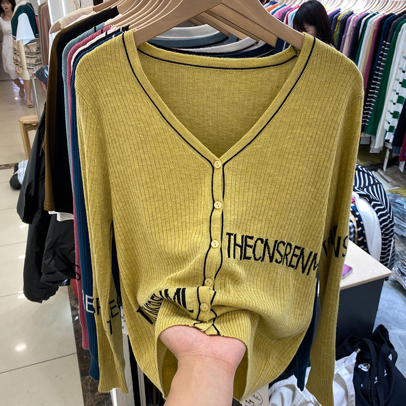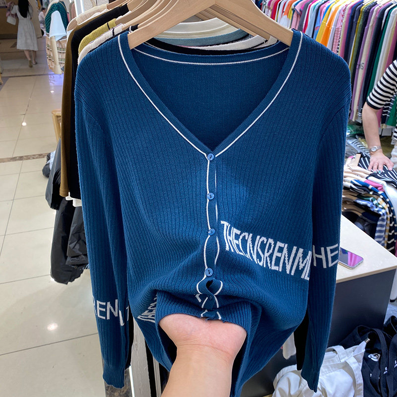 Europroduct Design Sensation Letter V Collar Long Sleeve Knit Cardigan Blouse Women 2021 Early Fall New Slim Sweater Jacket-Taobao