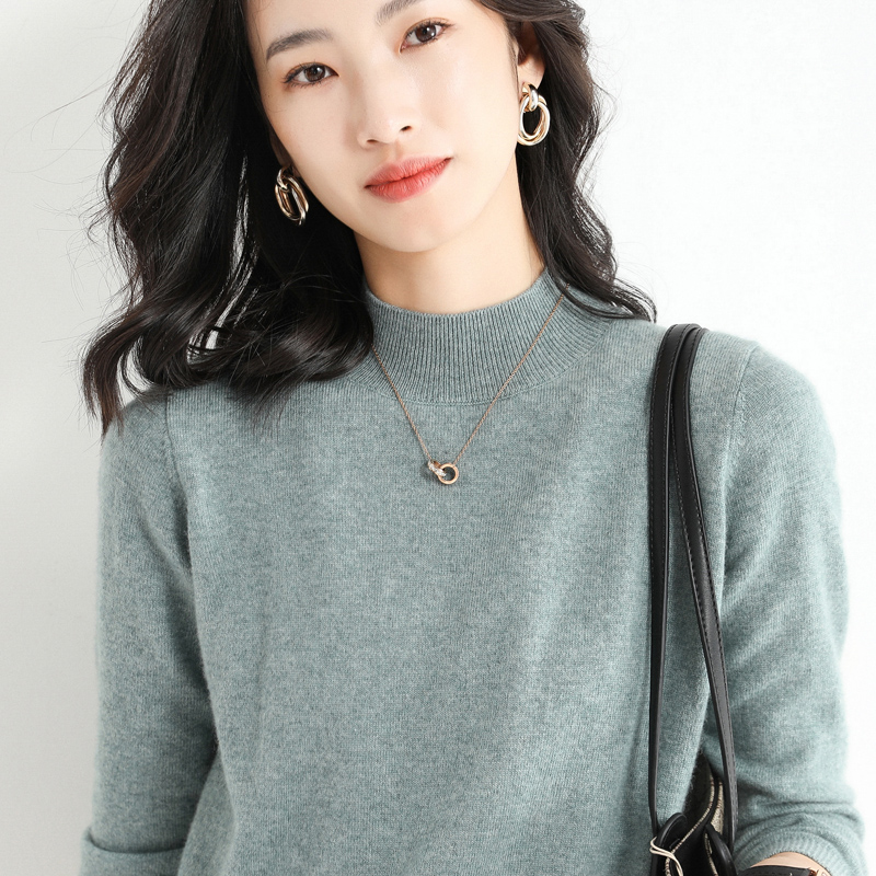 Semi-high collar sweater women's new autumn and winter sets a non-cashmere sleeve head slapped undershirt with a thin foreign-knitted blouse