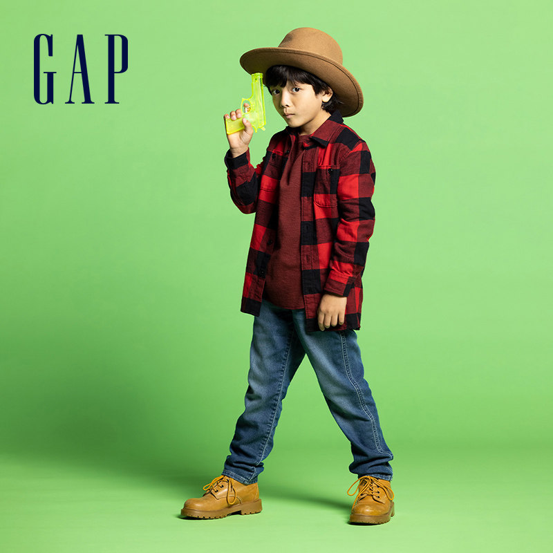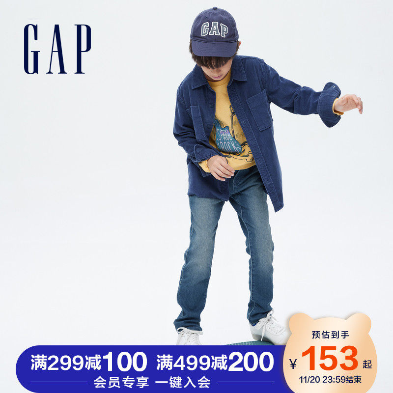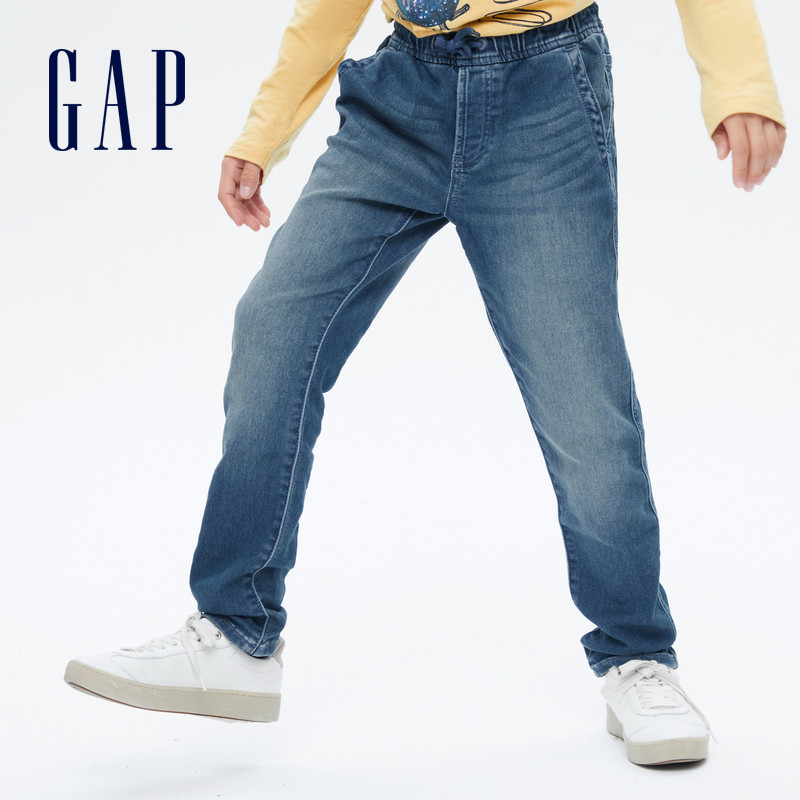 Gap boys cool handsome white straight jeans 708018 2021 autumn and winter new children's clothing elastic loose trousers