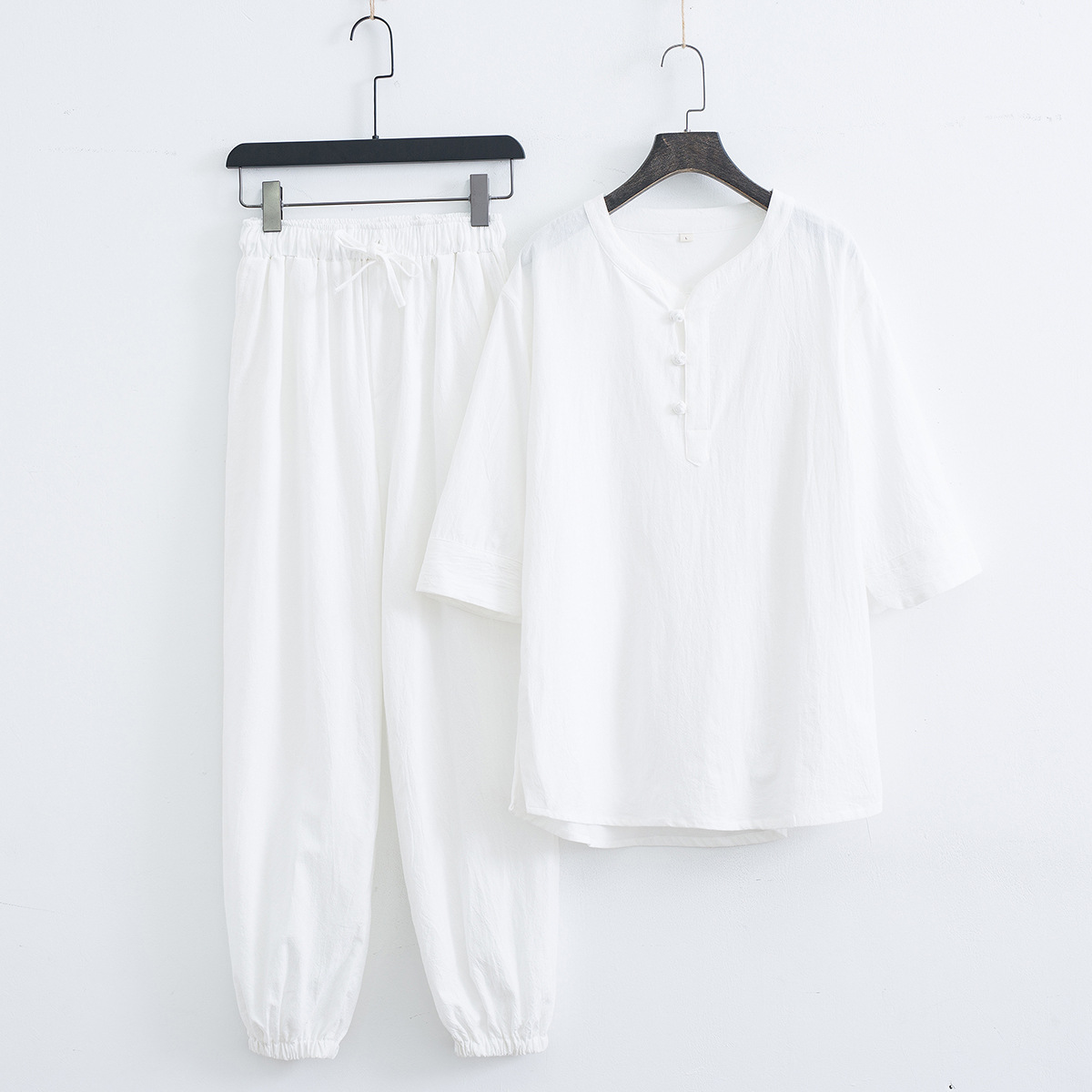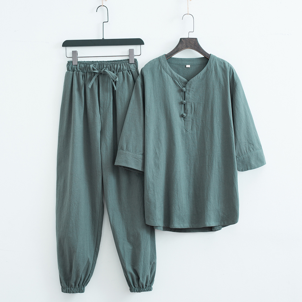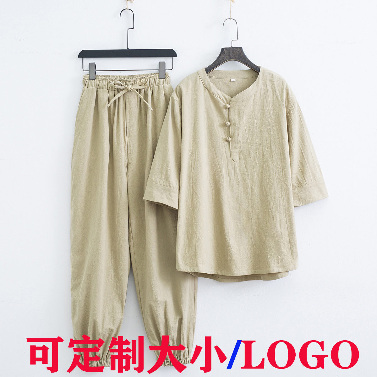 Zen dress for men's cotton linen suit short sleeve men's clothing set for LOGO disc buckle Down with mantra for the tea service The work clothes for tea