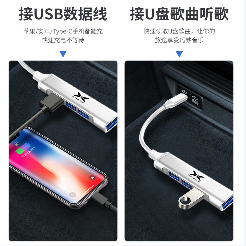 Xiaopeng deep black-Upgrade section (Type-C transfer USB) one drag four-turn connector Xiaopeng (Type-C to USB) Four ports to expand Xiaopeng at the same time (USB transfer USB)