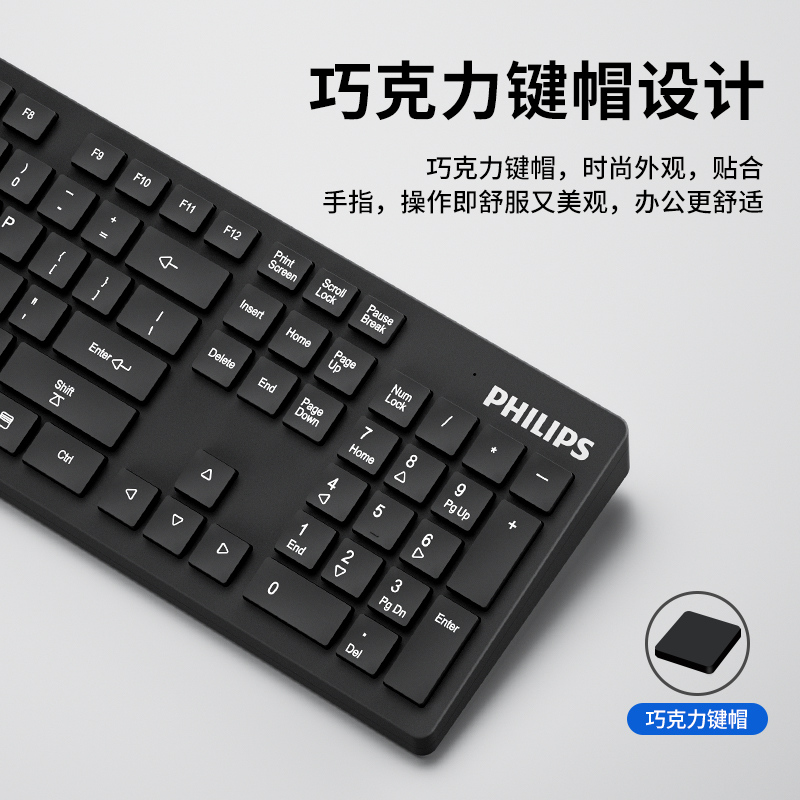 Philips wireless keyboard Mouse suit muted light and thin chocolate keys splash-proof water-Taobao