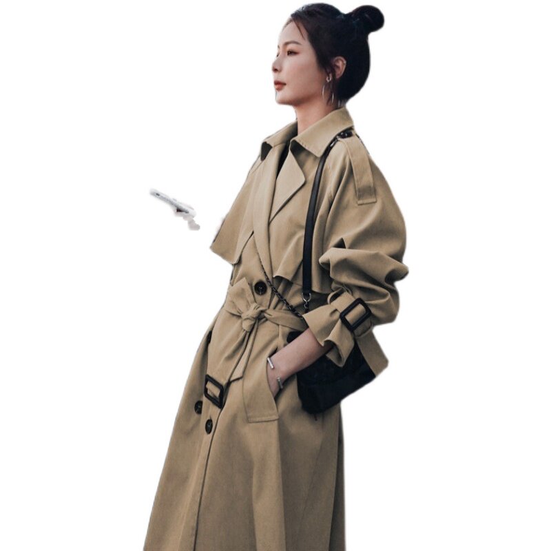 maje kara khaki trench coat women spring and autumn 2021 New loose temperament thin medium and long version of coat