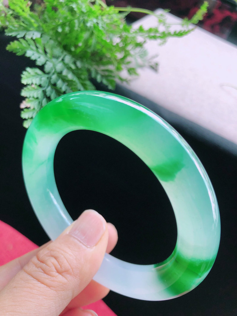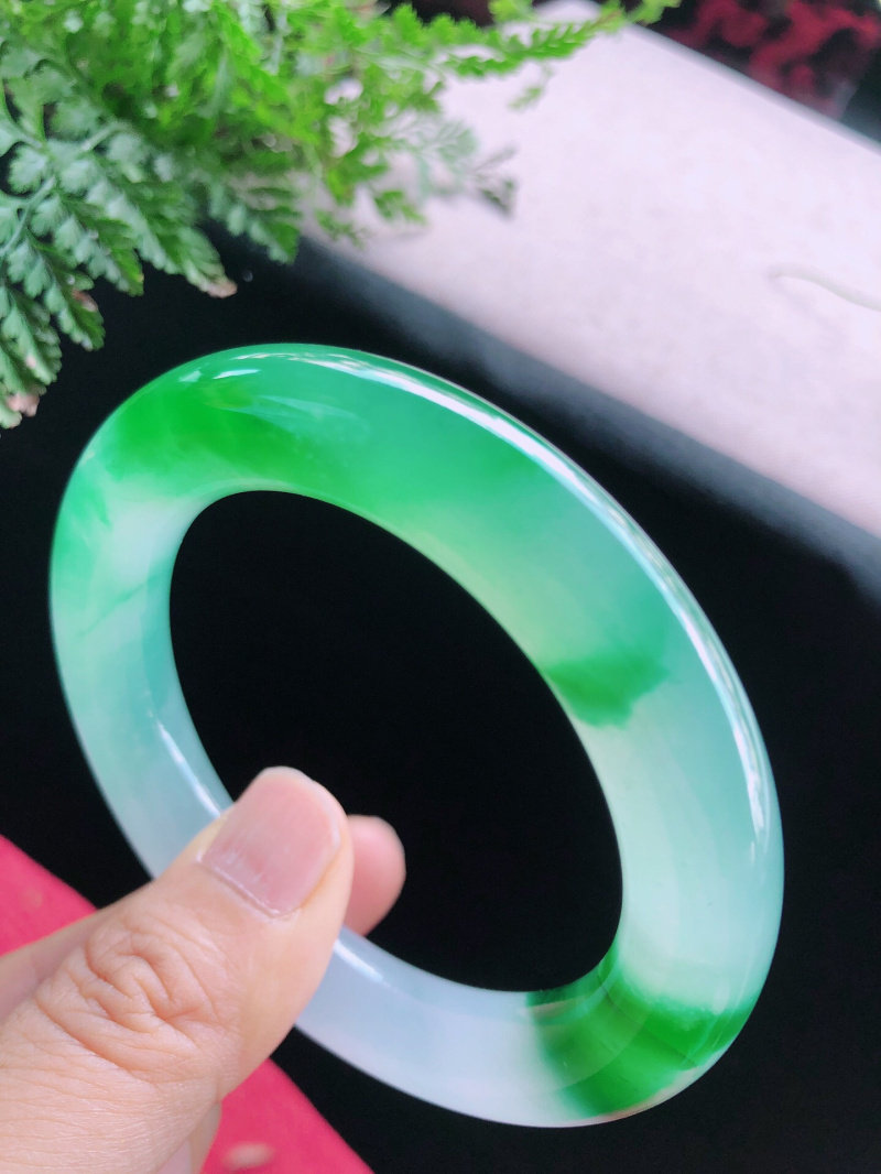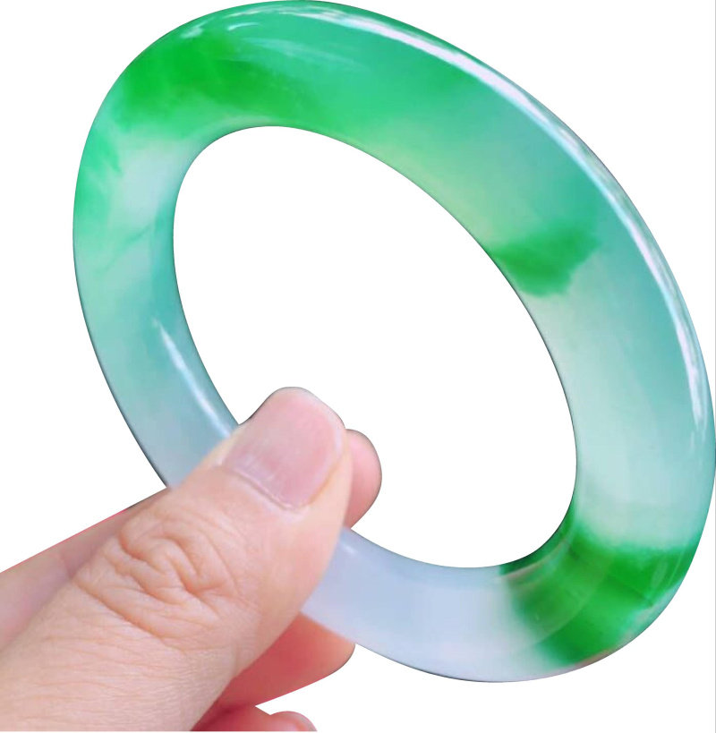 Natural Burmese a-cargo jadeite bracelet Qingshui jade bracelet ice species floating flower jade thin round strip bracelet sun green female models