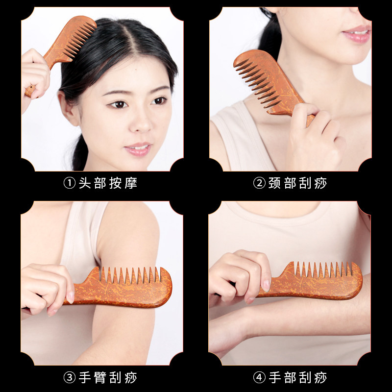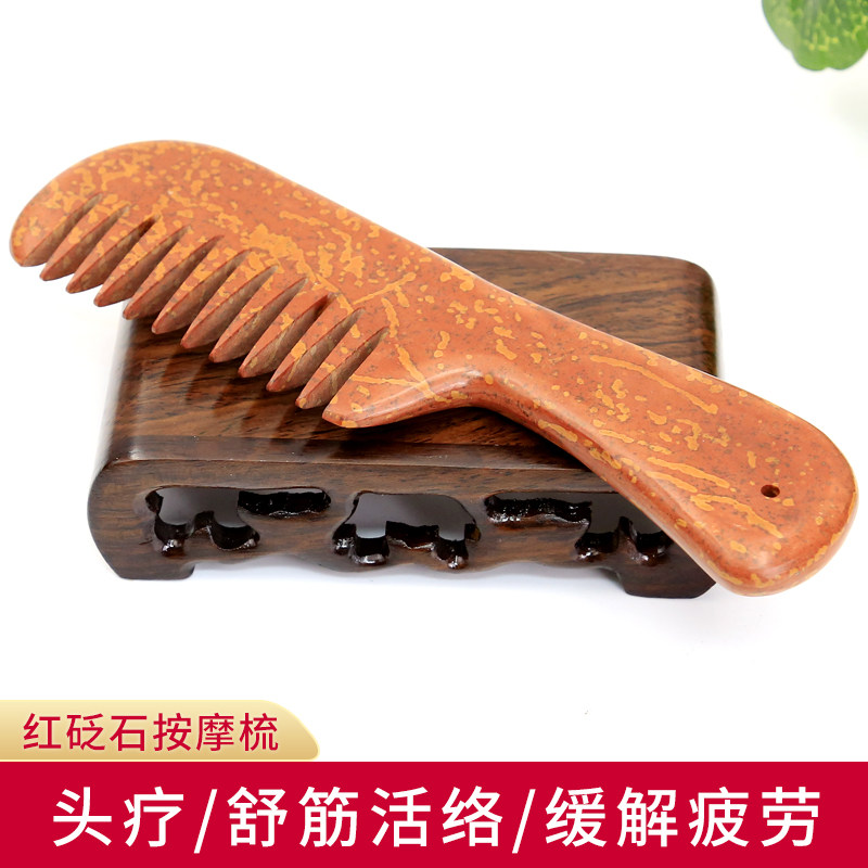 Red bianstone massage comb head Meridian comb beauty salon physiotherapy scraping board comb long hair female household head recuperation