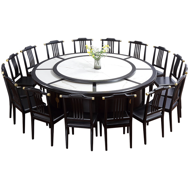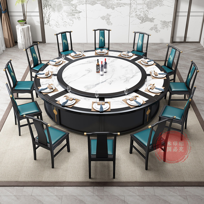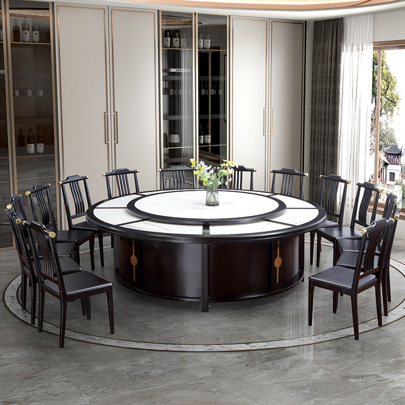 New Chinese-style solid wood dining table hotel 2 2 m rock slab clubhouse electric large round table 3 m hotel box banquet rotation