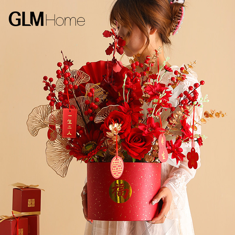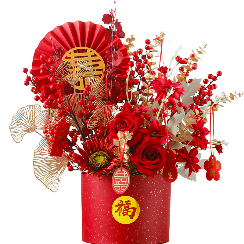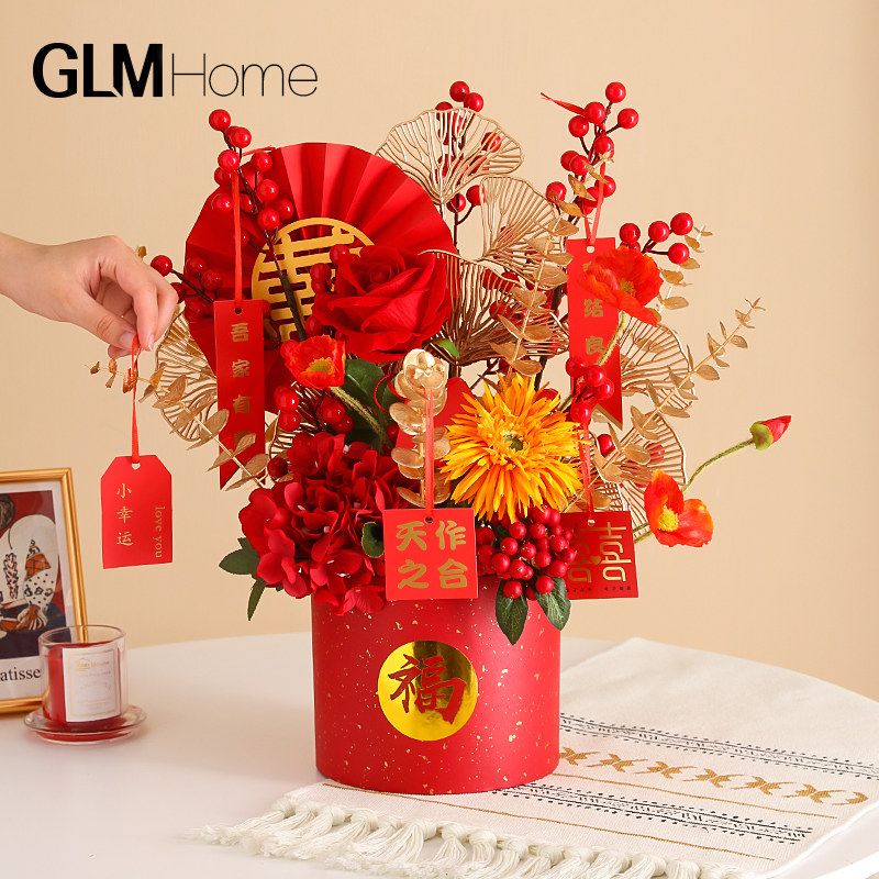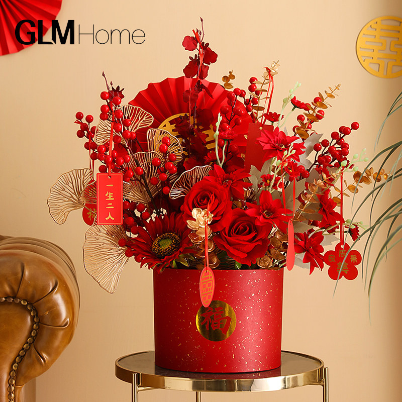 Fukubucket Creative Living Room TV Cabinet Wedding house floral display fake flower emulation Flower Festive Flowers Lunar New Year Decorative Flowers