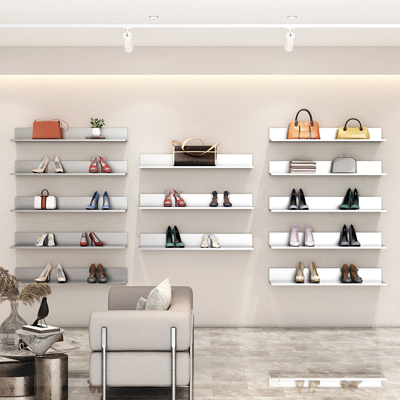 Shoe Rack Show Rack Clothing Store upper wall wrapping frame Stainless Steel Wire Drawing Silver minimalist Shelve bag of shelve
