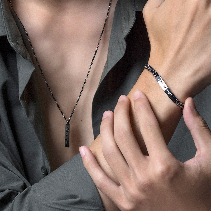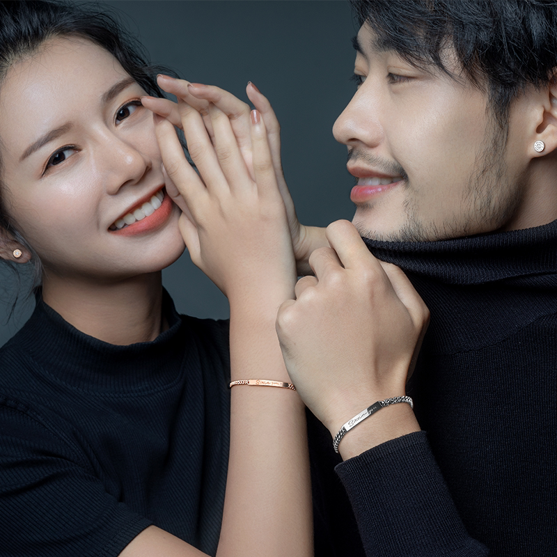 SinceYou couple handmade lovers with a pair of pure silver Cuban chains Custom lettering names Advanced sensation men's tides