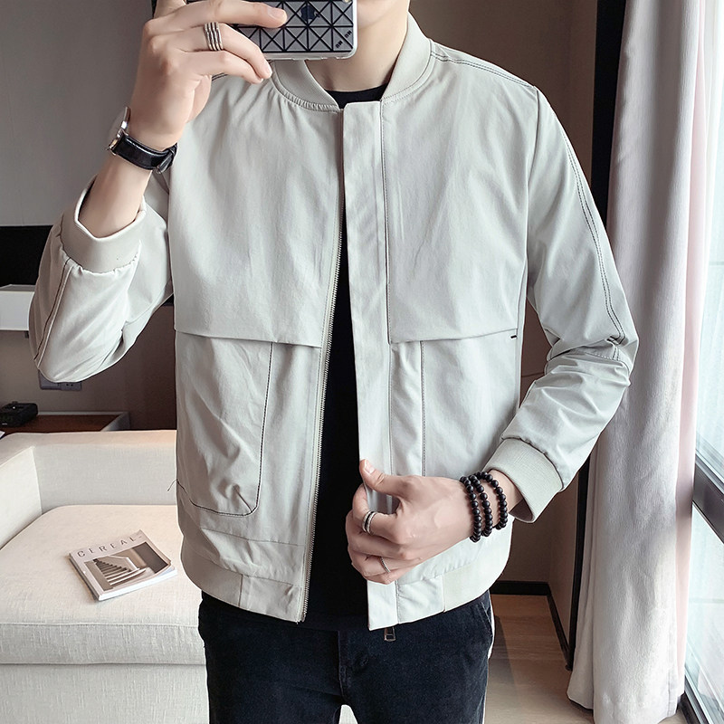 Spring and Autumn Casual All-match Jacket Men's Fashion Trend Zipper Jacket Men's Slim Fit Handsome Workwear Tops Men