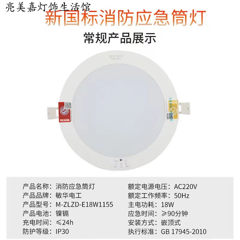 Minhua fire emergency downlight embedded with its own battery concealed hotel human body induction lighting led spotlight