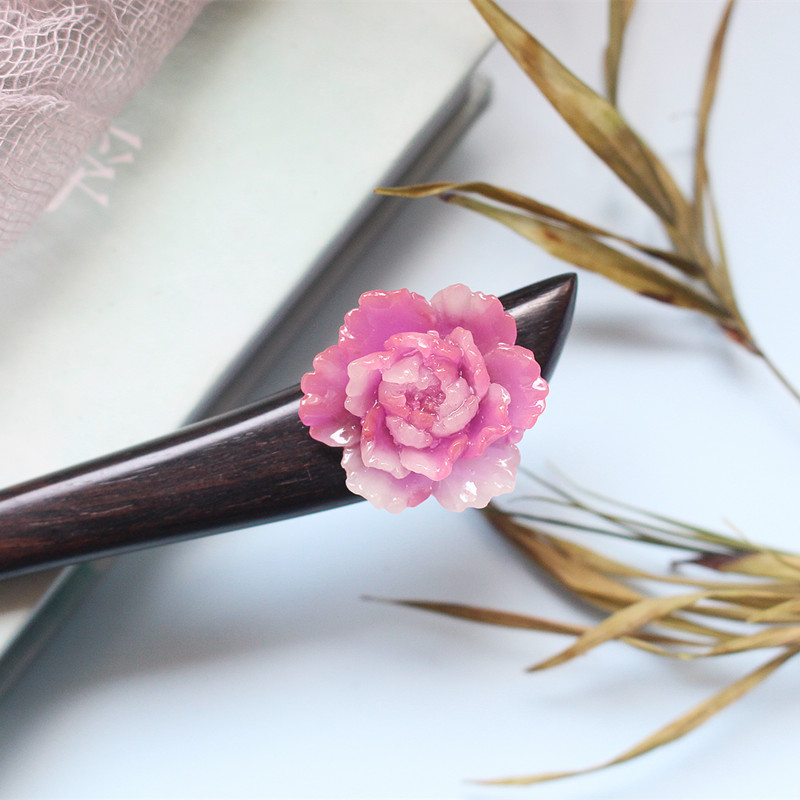 Court peony retro elegant ebony hairpin graceful and luxurious desert rose hairpin women's hair accessories