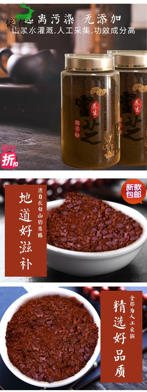 Rolling Lingzhi spore powder low temperature Northeast Changbai Mountain red Lucid Lucid Lingzhi head Daosporidium powder 250 gr Jilin
