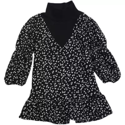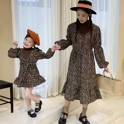 Korean parent-child autumn 2021 new floral dress female baby Foreign School high collar mother dress