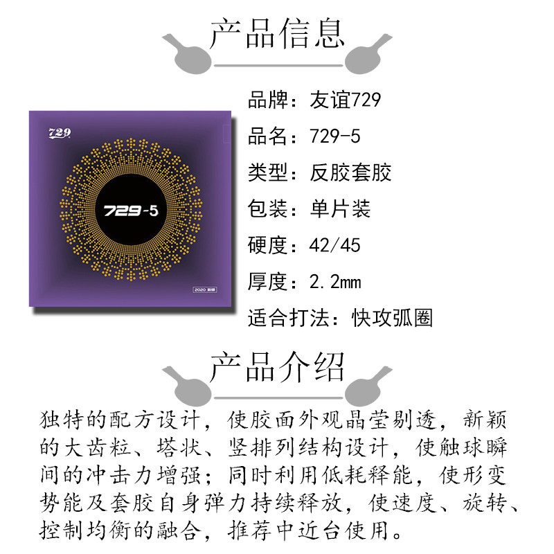 Friendship 729-5 table tennis racket sticky anti-glue set glue fast break arc ring speed rotation control balance fusion