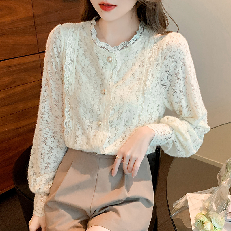 Plus velvet lace bottoming shirt women's autumn and winter inner wear 2022 winter new fashion foreign style small shirt long-sleeved warm top