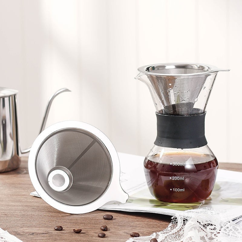 Stainless Steel Strainer Coffee Filter Cup Funnel Suit Drip Filter Hand Punch Portable Coffee Appliance Free Filter Paper