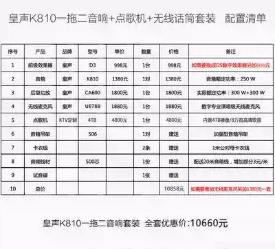 Huangshen K810 one drag two audio song machine wireless microphone professional karaoke family KTV speaker set