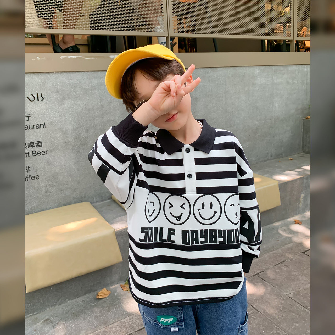 Left West Boy Clothing Boy Sweatshirt Children CUHK Child Autumn Streak POLO Collar Spring Dress Blouse Boy 2022 New